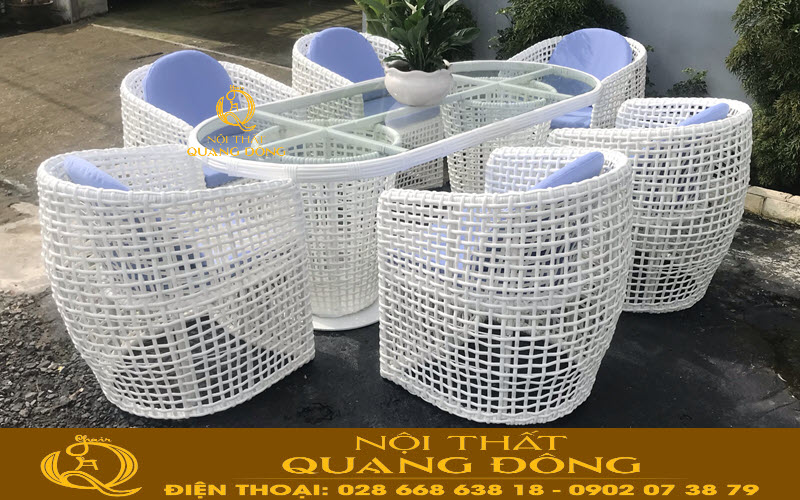 Mẫu bàn ghế giả mây QD-369 màu trắng tại xưởng Nội Thất Quang Đông