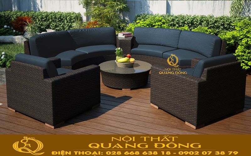 Sofa mây nhựa QD-730 với gam màu tối cho không gian sự trầm ấm, sang trọng