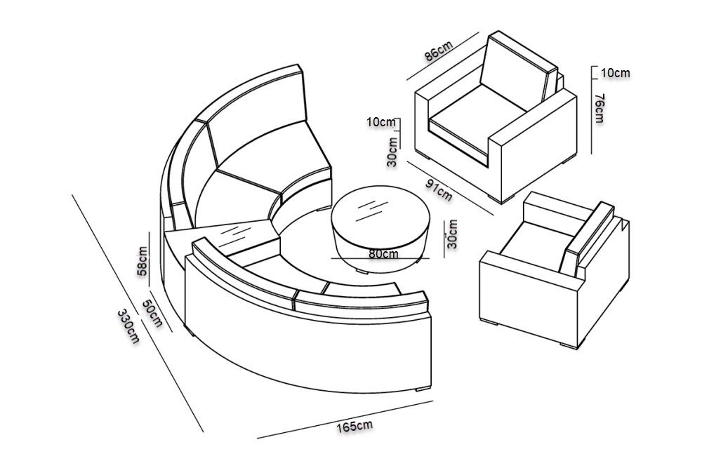 Kích thước sofa bán nguyệt: 330*165*86*79 CM